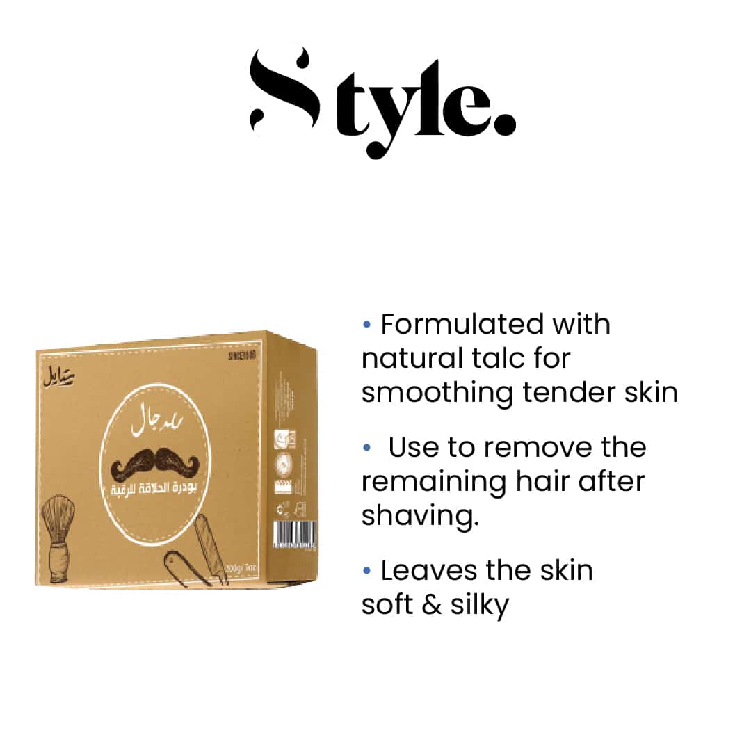 Formulated with natural talc for smoothing tender skin. Use to remove the remaining hair after shaving. Leaves the skin soft & silky